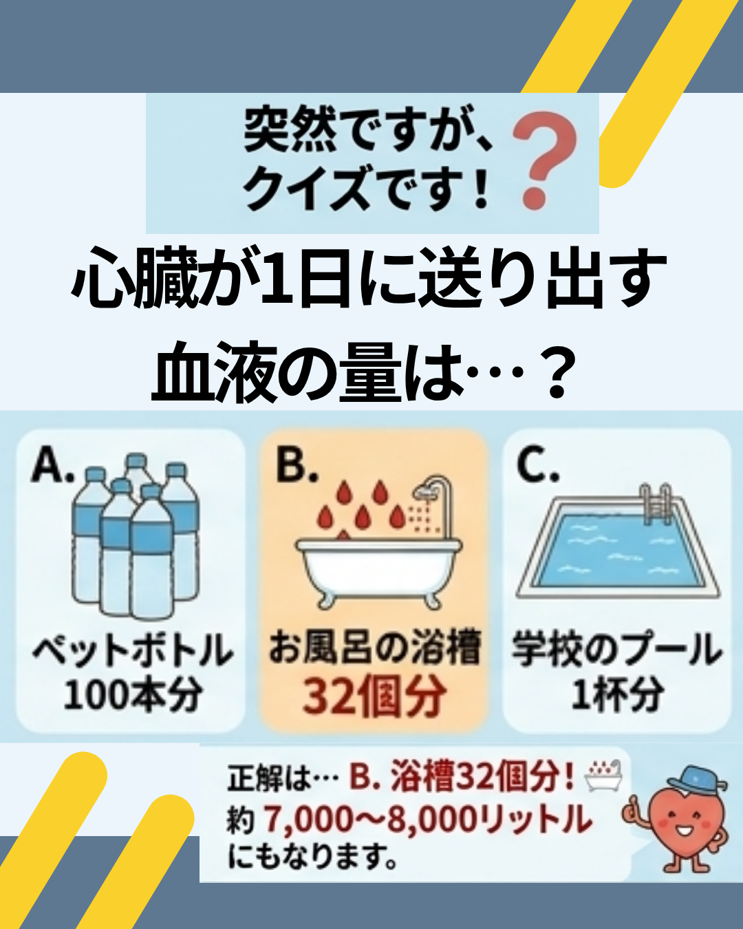 正解は… B. 浴槽32個分! 🛁