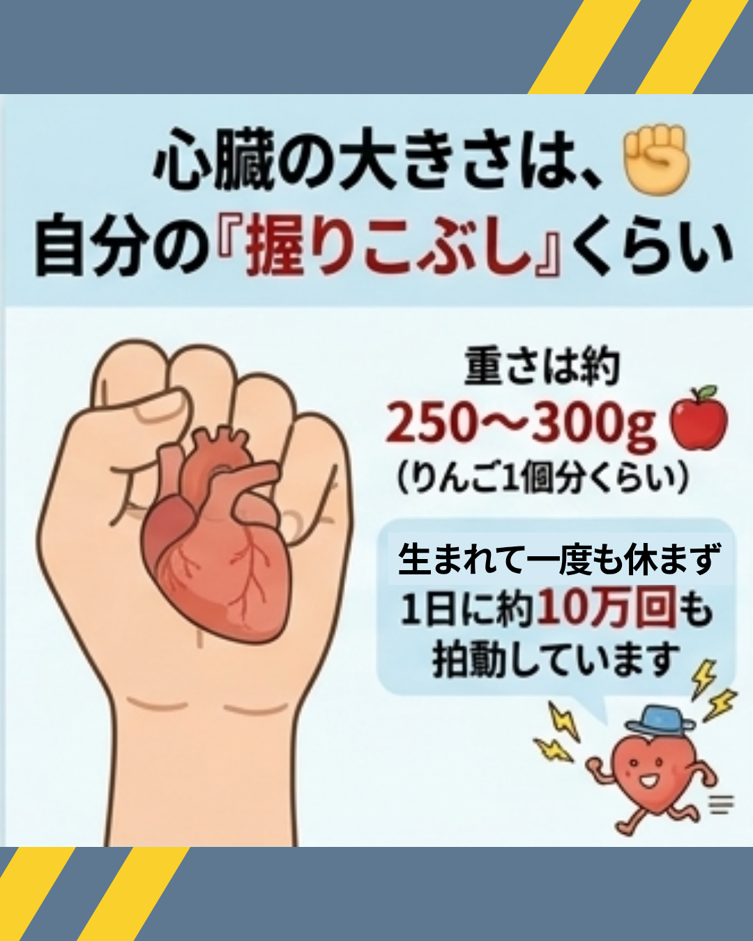 - 心臓は 握りこぶし大 の小さなポンプ